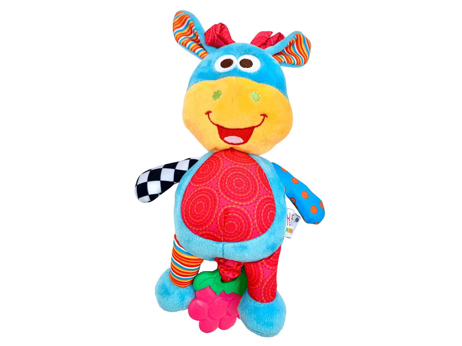 Este bonito juguete le ayuda a tu bebe a desarrollar más rápidamente sus habilidades visual, cognitiva, motora, táctil y auditiva. El tamaño perfecto para manos pequeñas, este juguete de tela suave emite música cuando se jala de la mordedera. Presenta colores brillantes y patrones llamativos para la estimulación visual, mientras que los diferentes tejidos ofrecen un desarrollo táctil. Las cintas de seda son perfectas para que el bebé practique su motricidad fina.